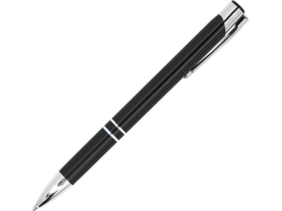 Шариковая ручка с алюминиевым корпусом и кнопкой с анодированным покрытием. Синие чернила