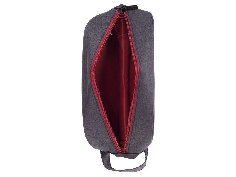 Изделие выполнено из высококачественного полиэстера имеет одно основное отделение. Размер несессера – 23 x12 x 10 см, позволяет его перевозить в багаже, а так же использовать самостоятельно, для удобства переноски имеется широкая ручка.