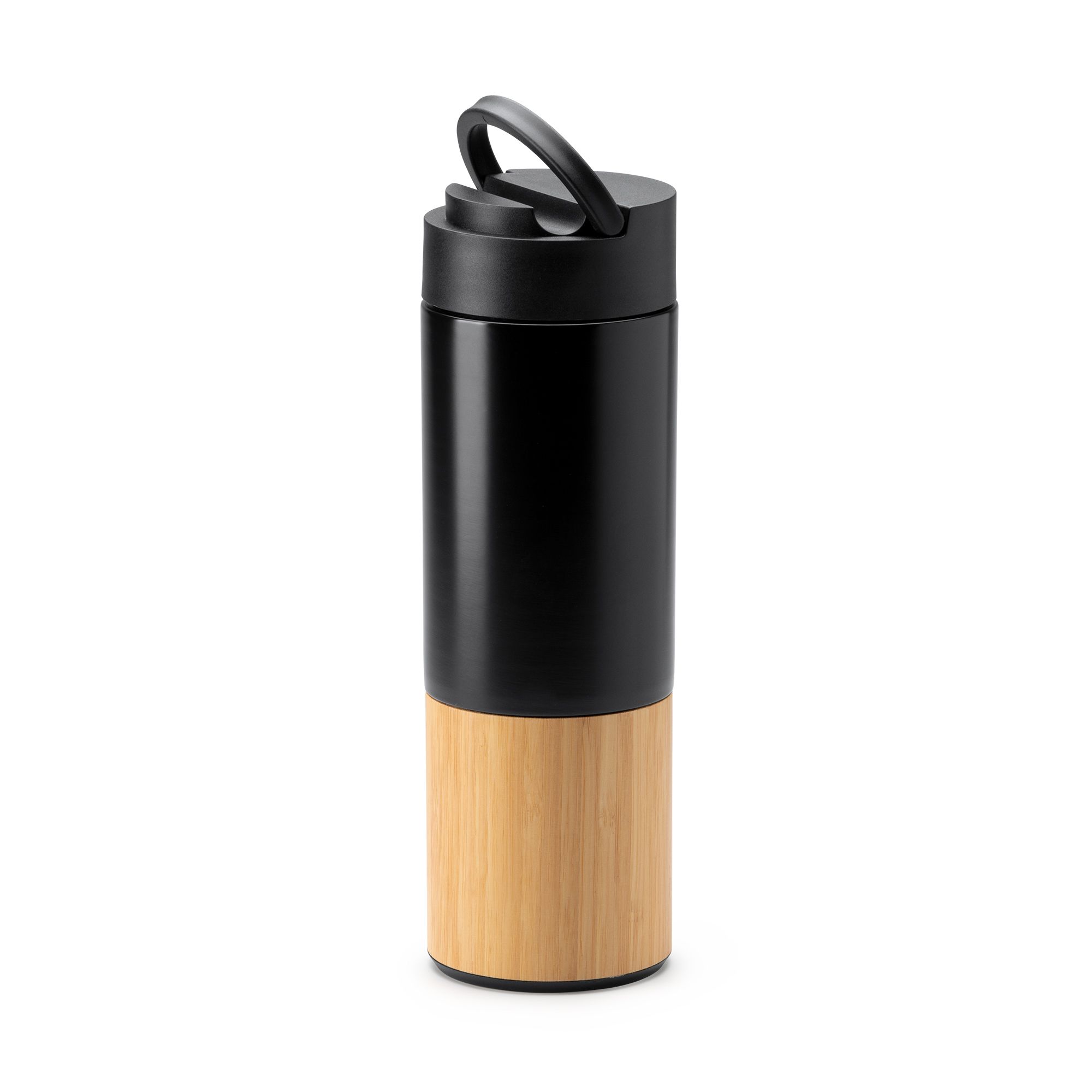 Бутылка с двойными стенками из нержавеющей стали и деталями из бамбука. Идеальная бутылка для сохранения напитков холодными и горячими. Крышка с функцией поддержки ручки, идеально подходит для смартфона. Емкость 450 мл.