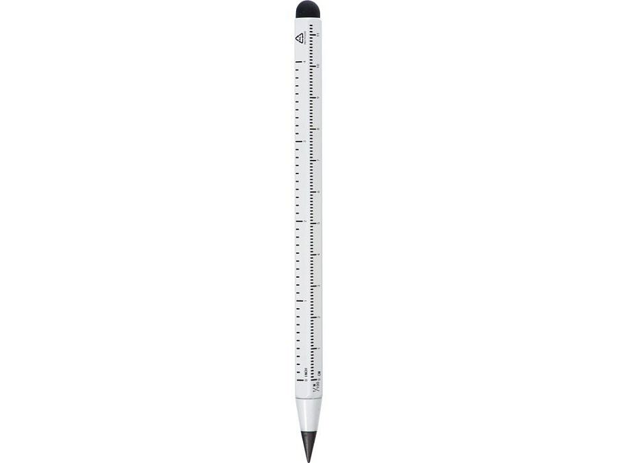 Карандаш изготовлен из переработанного алюминия. В отличие от обычных карандашей его не нужно точить, и он не пачкает руки.