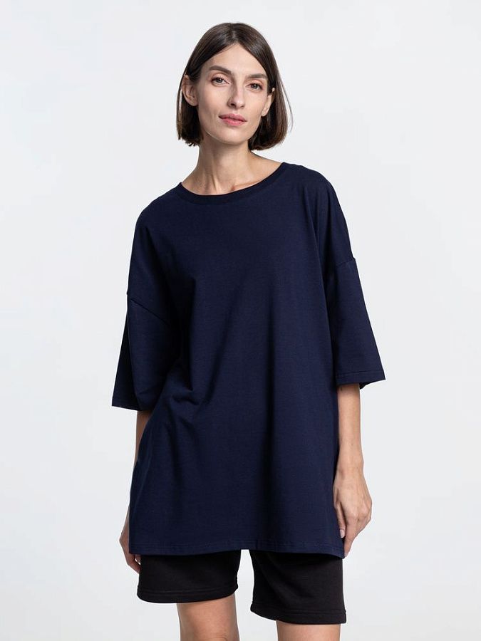 Объемная кроеная футболка с удлиненным рукавом из гребенного хлопка с эластаном не стесняет движений и создает модный расслабленный силуэт.