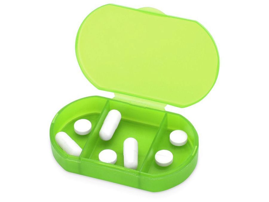 Компактная таблетница выполнена из прочного полупрозрачного пластика, имеет три отделения.