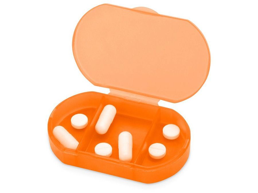 Компактная таблетница выполнена из прочного полупрозрачного пластика, имеет три отделения.