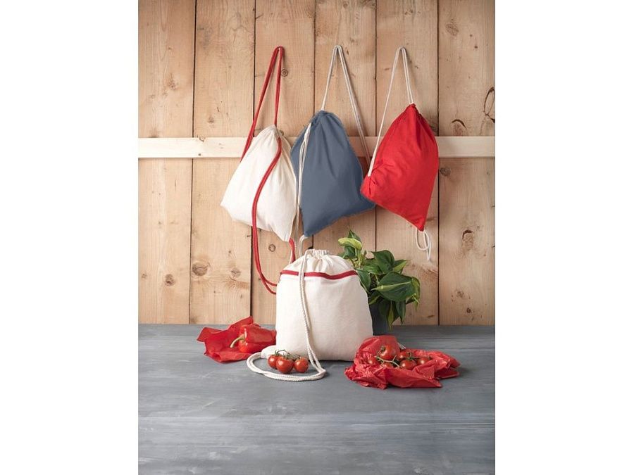 Большое основное отделение затягивается хлопковым шнурком. Прочность до 5 кг.