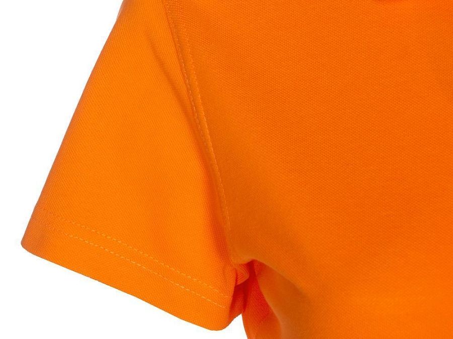 Женская рубашка-поло First. Воротник 1х1. Обшивка внутри воротника. Мужская и детская модели с 2 пуговицами, женская - с 4 пуговицами. Пуговицы с гравировкой в тон. Пике, 100% хлопок. 160 г/м2.