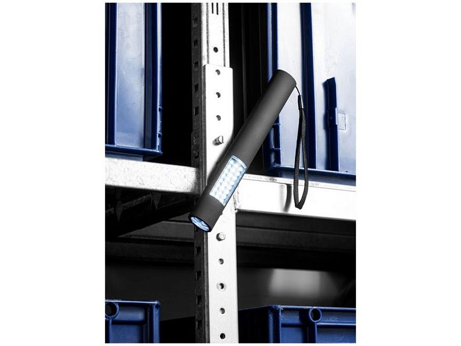Стильный магнитный фонарик с тремя режимами. Первый режим – 4 осветительных светодиода, второй режим – 24 осветительных светодиода, третий режим – одновременное включения первых двух режимов. Магнитная задняя сторона для удобного хранения или для крепления к металлическим поверхностям во время использования. Кнопка включения/выключения. Нейлоновый ремешок для переноски.