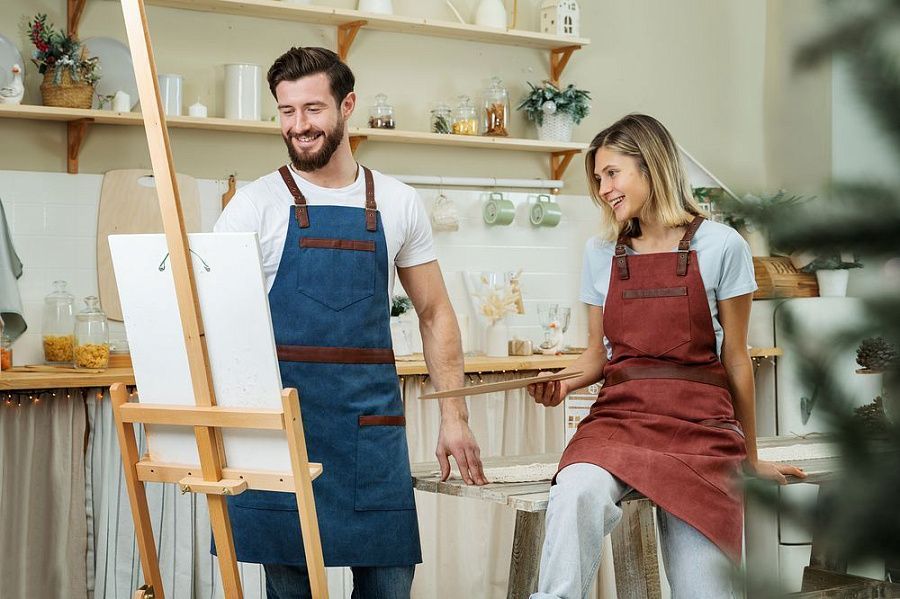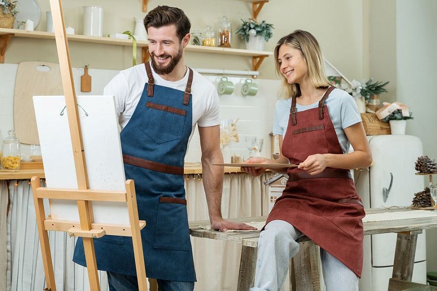 Универсальный фартук для бармена или официанта, людей творческих профессий — художников или скульпторов, а также для всех, кто любит мастерить что-то своими руками.