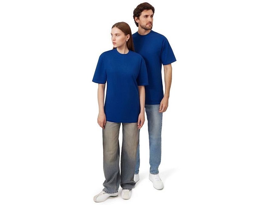 Футболка выполнена из хлопкового френч терри с петельками на изнаночной стороне. Горловина обработана рибом 2х2 и дополнительно усилена тесьмой-елочкой с внутренней стороны спинки. Гладкая поверхность полотна позволяет идеально нанести изображение. Футболка расслабленного силуэта для прогулок и других видов приятного времяпрепровождения