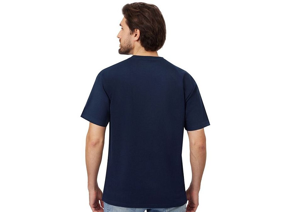 Футболка выполнена из хлопкового френч терри с петельками на изнаночной стороне. Горловина обработана рибом 2х2 и дополнительно усилена тесьмой-елочкой с внутренней стороны спинки. Гладкая поверхность полотна позволяет идеально нанести изображение. Футболка расслабленного силуэта для прогулок и других видов приятного времяпрепровождения