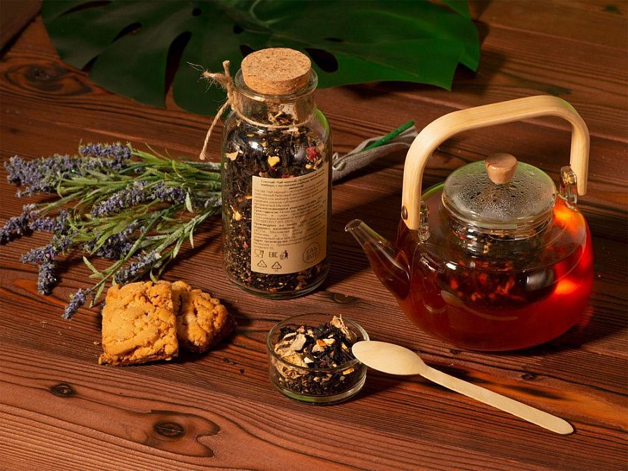 Состав: чай чёрный с ананасом и соком ананаса (чай чёрный байховый крупнолистовой, кусочки ананаса, сок ананаса), медовые гранулы, облепиха сублимированная, ароматизатор натуральный "Ананас".