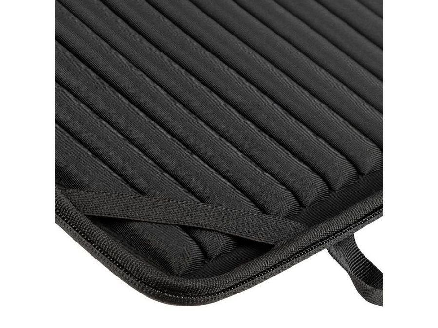 • Внутри дно оборудовано специальными накладками для защиты ноутбука, его рифленая форма обеспечивает хорошую вентиляцию и снижает нагрев устройства при работе в чехле.