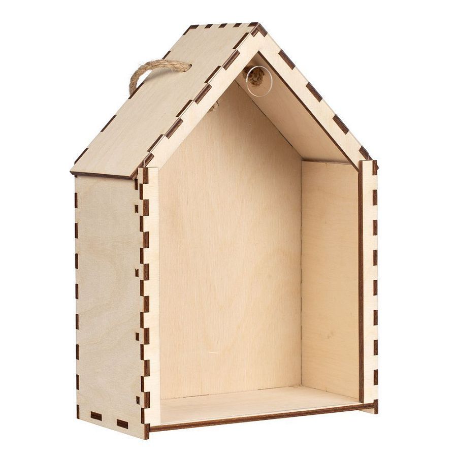 Упаковка в форме домика сделает подарок уютнее, а в дальнейшем сможет стать привлекательной деталью интерьера и использоваться в качестве мини-витрины или полочки.Деревянная коробка-пенал с выдвижной акриловой крышкой и джутовой ручкой.