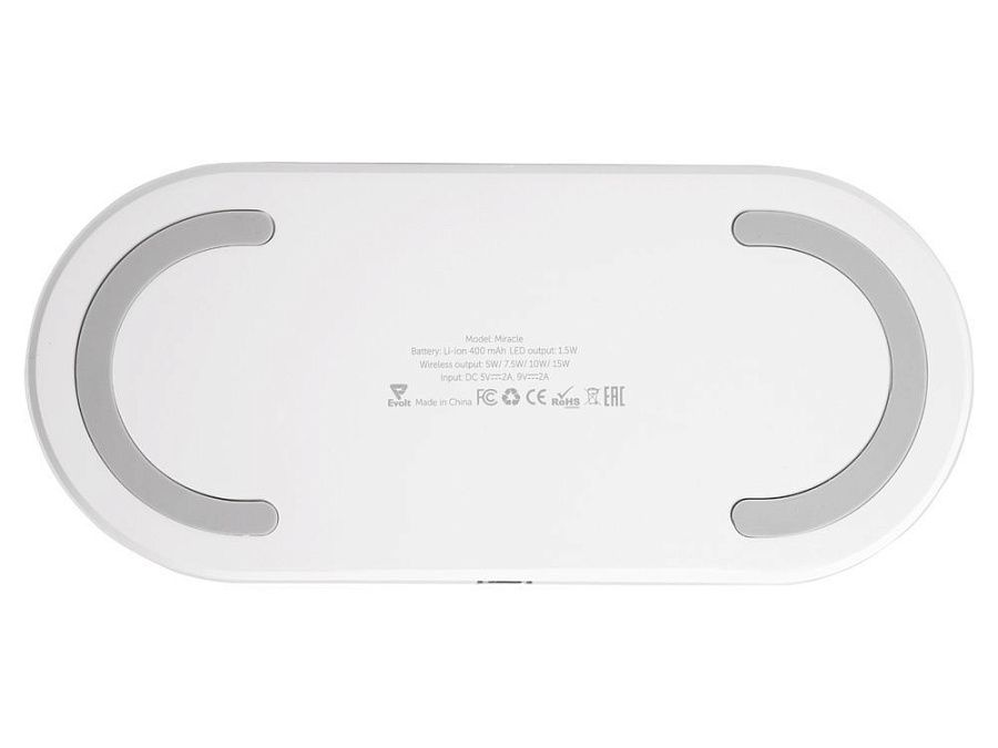 Ночник с RGB-подсветкой из 7 переливающихся цветов. Также есть режимы стандартного и яркого освещения теплым светом. Ночник выполняет функцию зарядной станции для устройств, поддерживающих беспроводную зарядку стандарта Qi мощностью 15 Вт*. Функция ночника работает без подключения к сети благодаря встроенному аккумулятору на 400 мАч. Функция беспроводной зарядки работает только при питании от сети. Устройство можно брендировать методом УФ-печати, тампопечати, а также цифровой печати.