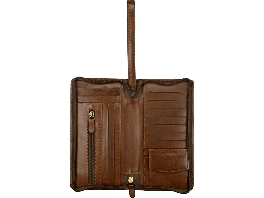 Стильное трэвел-портмоне из натуральной кожи позволить организоват хранение визитных и пластиковых карт. В портмоне предусмотрены карманы под купюры. Портмоне прекрасно подойдет для подарка женщинам и мужчинам.