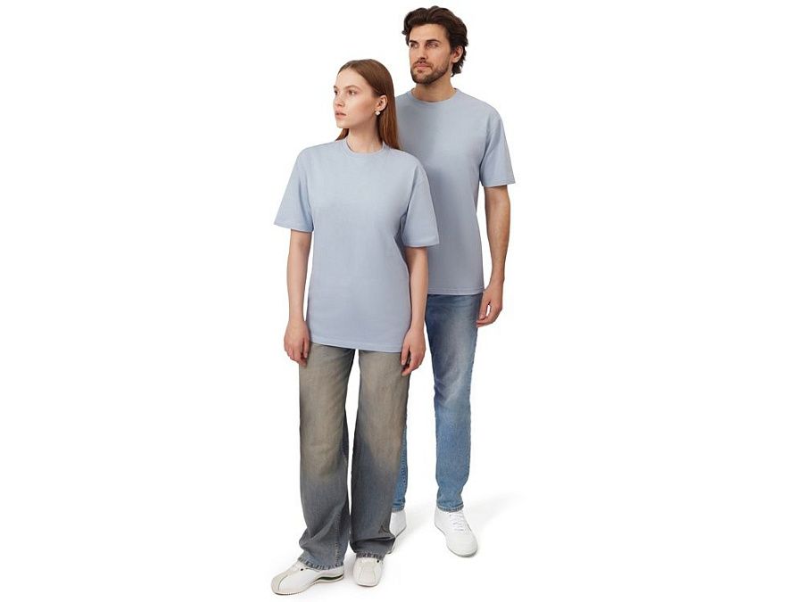 Футболка выполнена из хлопкового френч терри с петельками на изнаночной стороне. Горловина обработана рибом 2х2 и дополнительно усилена тесьмой-елочкой с внутренней стороны спинки. Гладкая поверхность полотна позволяет идеально нанести изображение. Футболка расслабленного силуэта для прогулок и других видов приятного времяпрепровождения