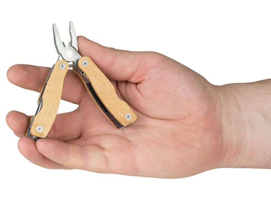 Компактный мультитул на каждый день с корпусом из бамбука. Поставляется в коробочке с чехлом.