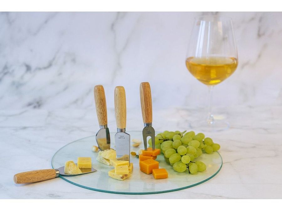 стеклянная доска, нож для твердого сыра, нож для мягкого сыра, нож для пармезана, вилка для сыра, ножки-стопперы (3шт)