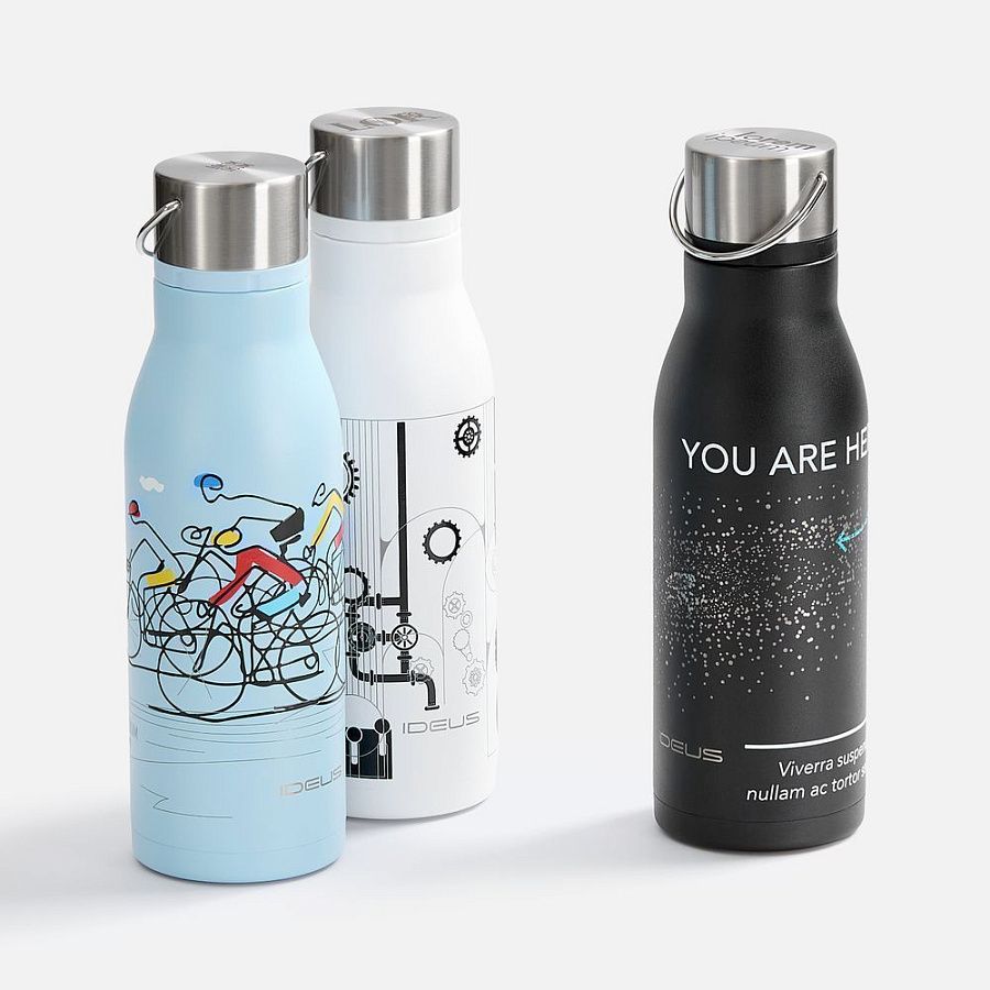 Вместительная бутылка для воды классической формы.