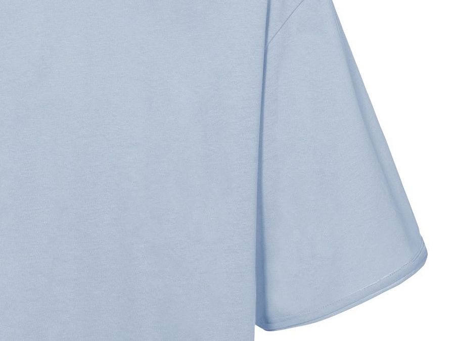 Материал — хлопковое джерси, плотность ткани средняя (150 гр/м2), что позволяет носить футболку в жаркие летние дни.