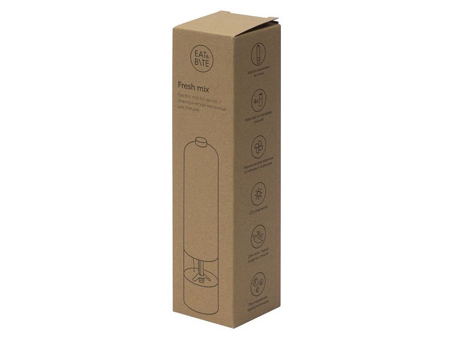 «Fresh mix» работает от 4-х батареек типа АА (не входят в комплект). Жернова изготовлены из керамики и устойчивы к коррозии.