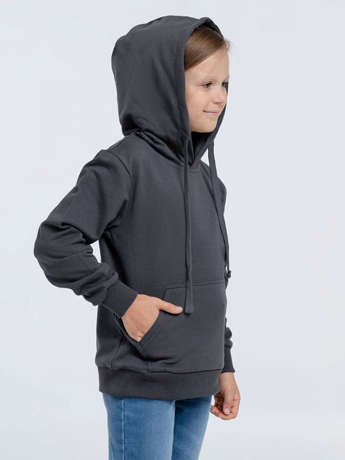 Легкое детское худи с карманом-кенгуру. Выполнено из высококачественного полотна, которое прошло активное крашение, предварительную термоусадку и обработку энзимами.