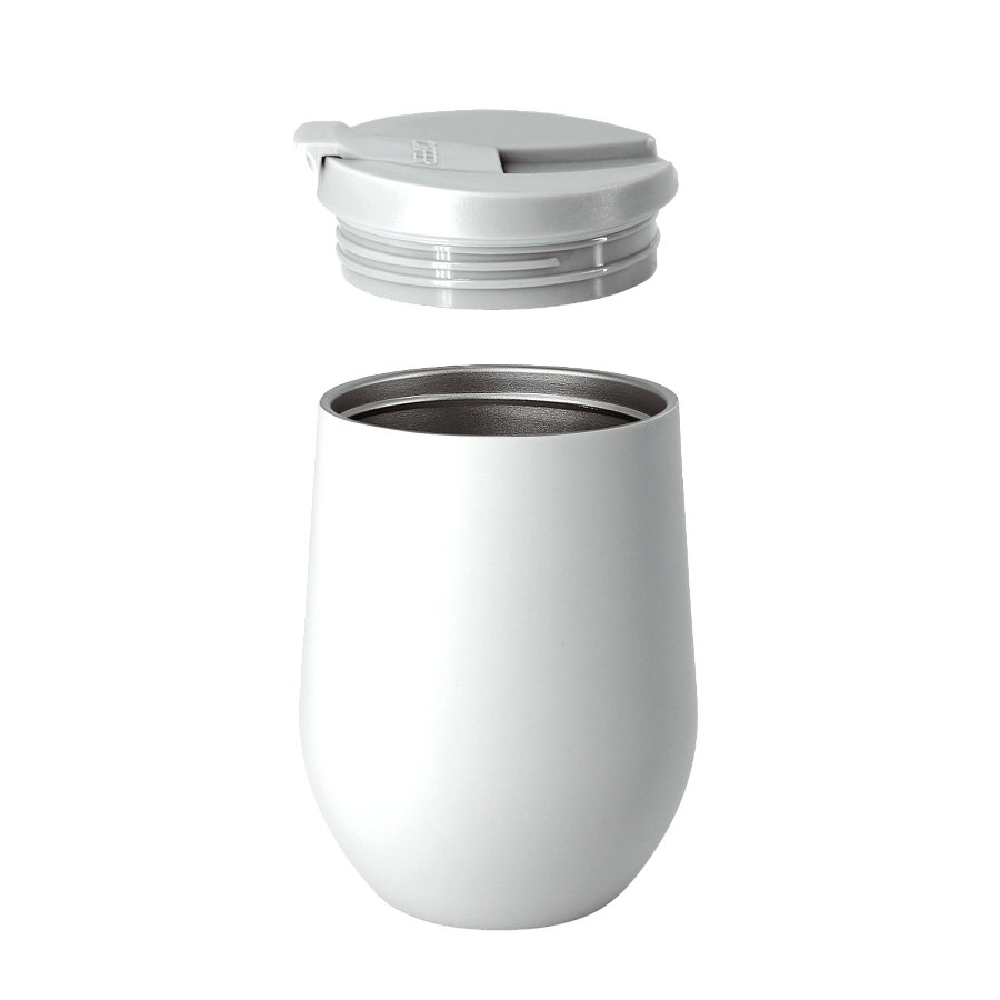 Характерная обтекаемая форма с расширяющейся нижней частью придает коферу оригинальность. Благодаря этой форме, кофер можно использовать для любых напитков: вода, чай, кофе, вино, коктейли - наливайте в кофер все, что захотите, напиток надолго сохранит свою температуру и вкус.