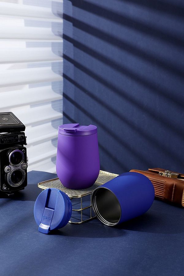 Характерная обтекаемая форма с расширяющейся нижней частью придает коферу оригинальность. Благодаря этой форме, кофер можно использовать для любых напитков: вода, чай, кофе, вино, коктейли - наливайте в кофер все, что захотите, напиток надолго сохранит свою температуру и вкус.