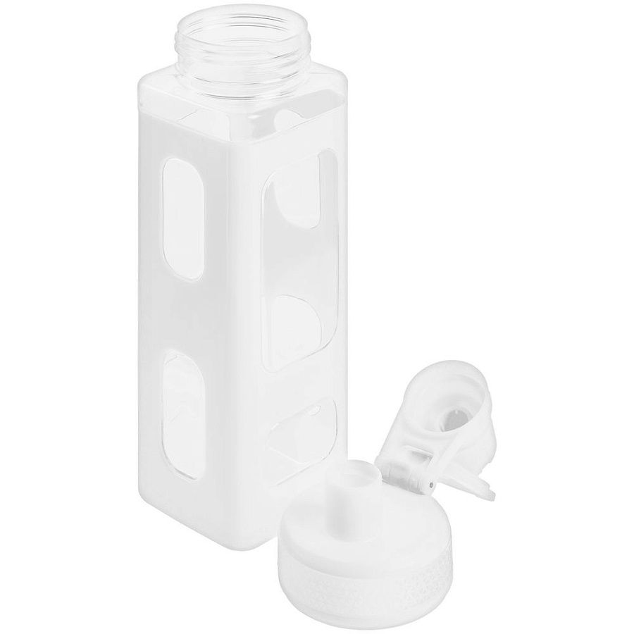 Вместительная квадратная бутылка для воды. Прозрачные окошки позволяют визуально оценить, сколько жидкости осталось внутри.