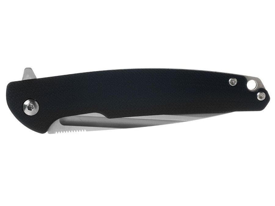Рукоять ножа изготовлена из стали с накладками из стеклотекстолита G10 - композитного материала на основе стеклоткани и эпоксидной смолы. G10 является прочным и ударостойким материалом, отлично переносит влагу, отличается повышенной стойкостью к огню. Рукоять ножа собрана на втулках - “бонках”, поэтому при необходимости его можно легко промыть. На рукояти расположено отверстие для темляка и клипса для удобного размещения ножа в кармане.