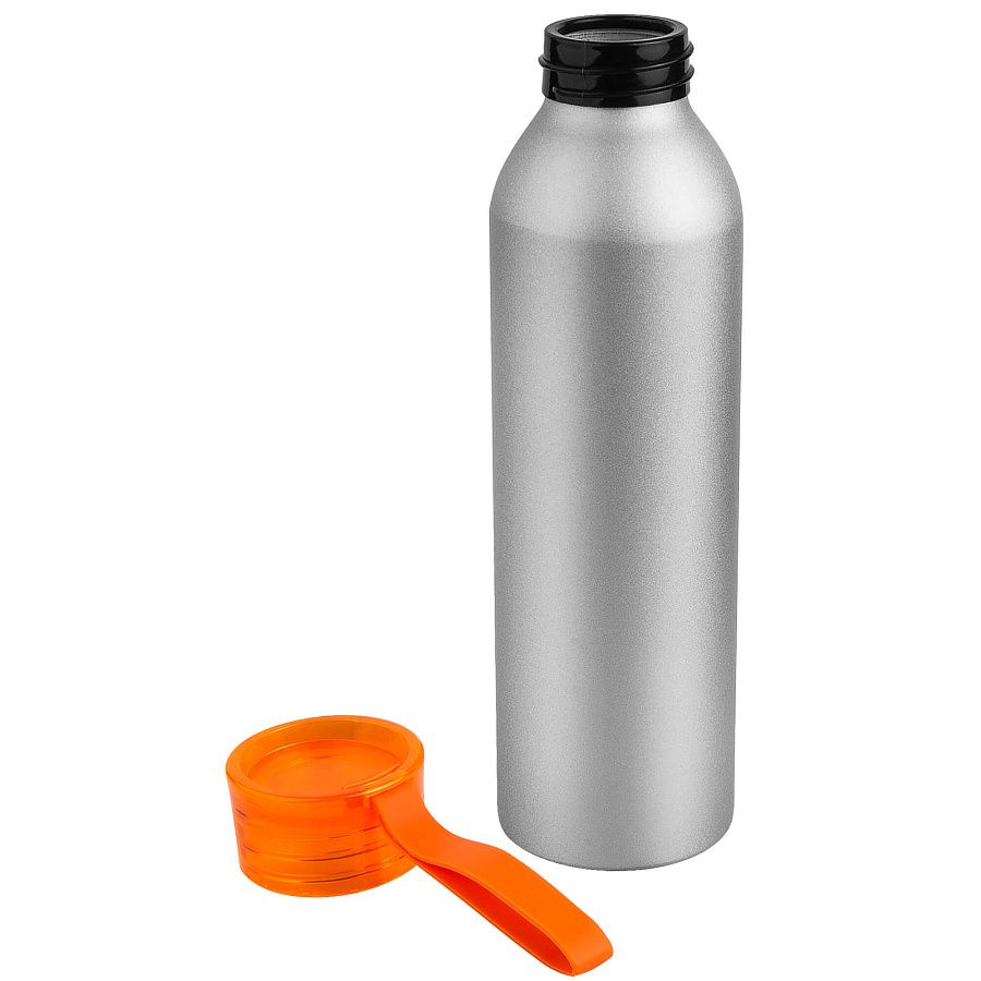 Алюминиевая матовая бутылка с пластиковой крышкой.