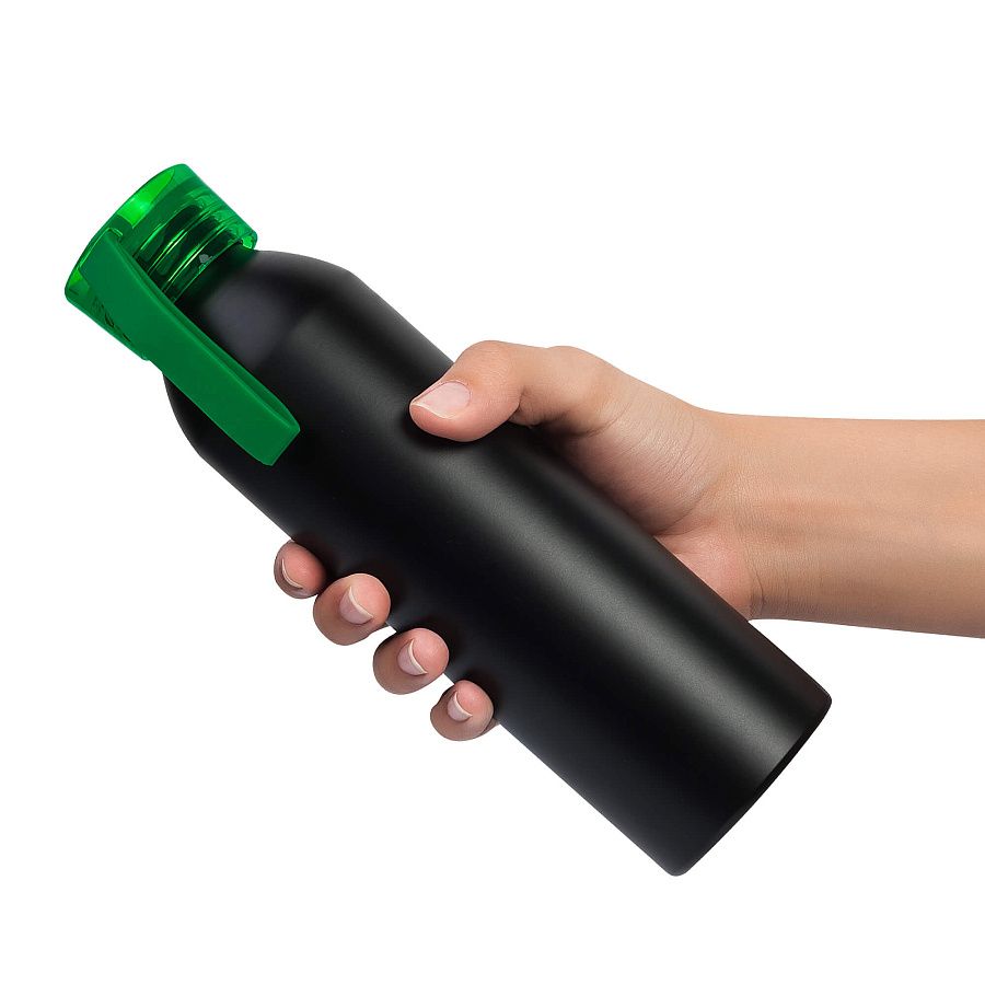 Алюминиевая матовая бутылка с пластиковой крышкой.