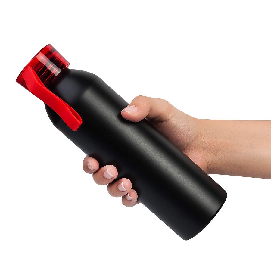 Алюминиевая матовая бутылка с пластиковой крышкой.