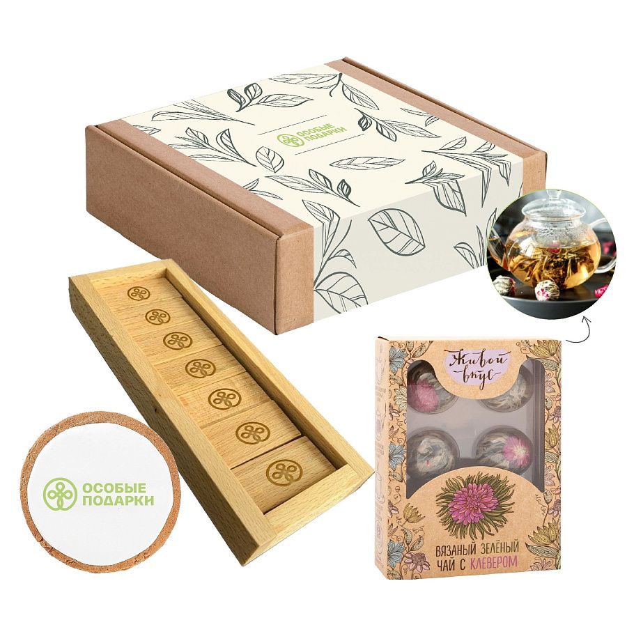 —Подарочный набор «Вкус жизни»: домино, вязаный чай, имбирное печенье, артикул 15070