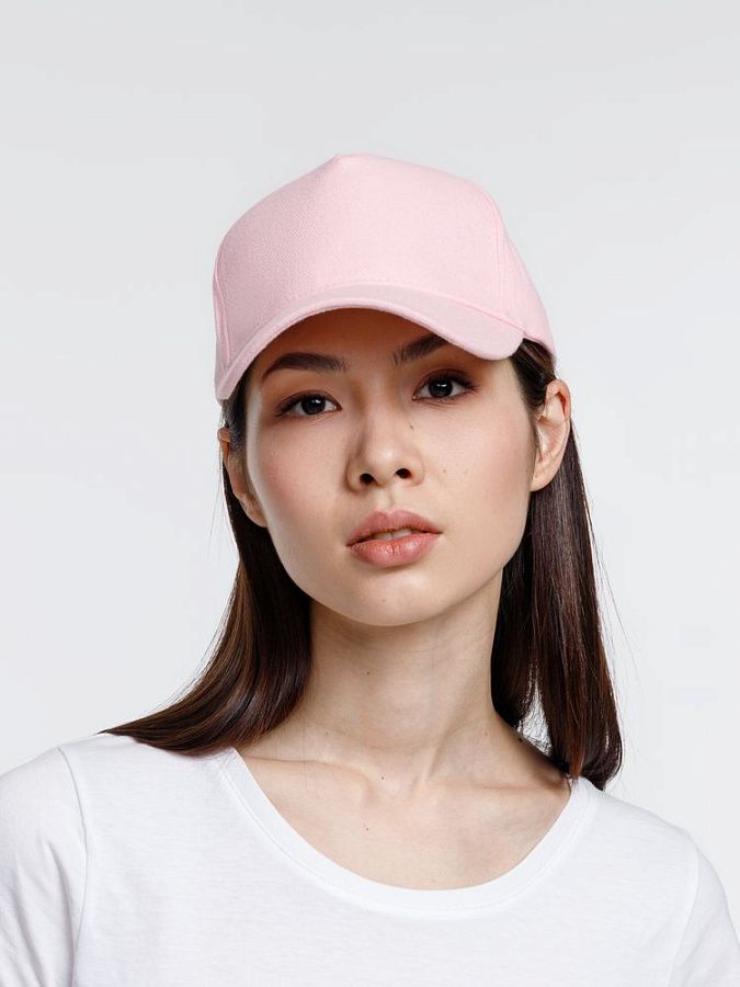 Минималистичная бейсболка с закругленным козырьком и большим местом для нанесения логотипа.
