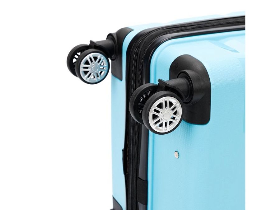 Каждый чемодан из серии "В ОТПУСК" оборудован удобной ручкой и удивительно легкими двойными колесами, что обеспечивает максимальную маневренность и комфорт во время путешествий.