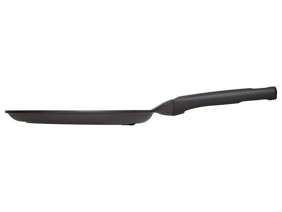 - Высокая прочность антипригарного покрытия позволяет использовать в работе с посудой неострые металлические инструменты.