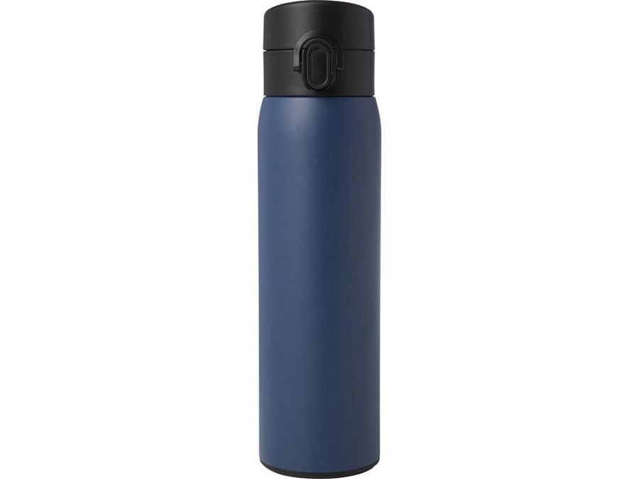 Стильная фляга-термос из переработанной нержавеющей стали, сертифицированная RCS, с простым механизмом открытия с помощью кнопки. Фляга герметична, а благодаря медной вакуумной изоляции напитки будут сохраняться горячими или холодными в течение нескольких часов. Объем составляет 450 мл. Поставляется в подарочной коробке из переработанного картона. Recycled stainless steel, Recycled PP Plastic. Packaging: FSC Mix Credit P5.1 CU-COC-877277.