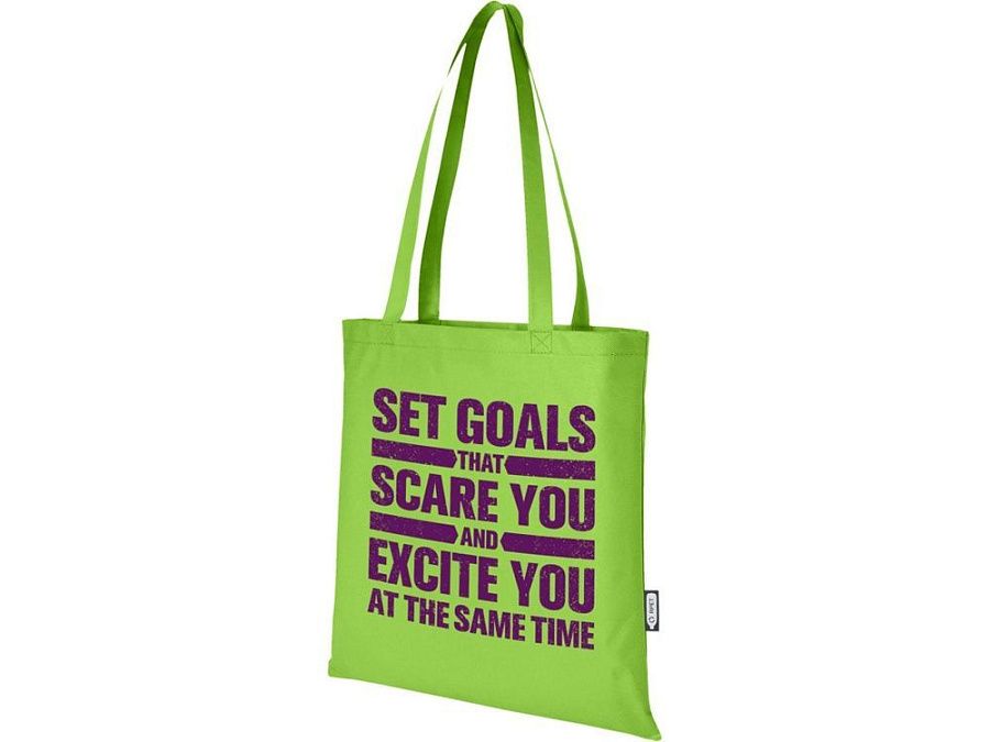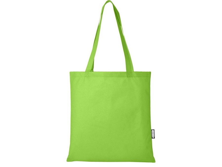 Большая эко-сумка Zeus из переработанных материалов, сертифицированных GRS, изготовленная из прочного и устойчивого к разрыву переработанного PET-пластика, является идеальным и более экологичным вариантом для ярмарок или конференций. Тонкий дизайн делает эту модель элегантной и подходящей для ношения легких предметов, например, блокнота и ручки. Ручки имеют длину 29 см, поэтому эко-сумку легко носить через плечо. Прочность до 5 кг. GRS certified recycled polyester, 80 g/m2.