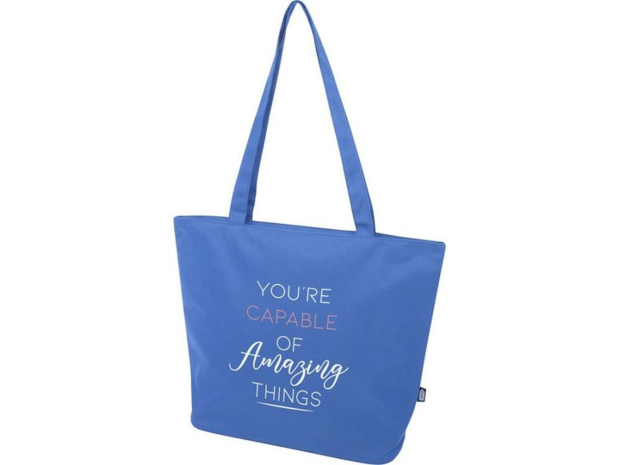 Изготовленная из водоотталкивающего переработанного PET-пластика 600D, эко-сумка на молнии Panama из переработанных материалов, сертифицированных GRS, является идеальной и экологичной многофункциональной сумкой для похода на мероприятие, на пляж или в магазин за продуктами. У изделия имеется основное отделение на молнии и внутренний карман на молнии, достаточно большой, чтобы вместить телефон и другие ценные вещи. Ручки длиной 34 см позволяют легко носить эко-сумку через плечо. Прочность до 10 кг. Не содержит ПВХ. 600DGRS certified recycled polyester.