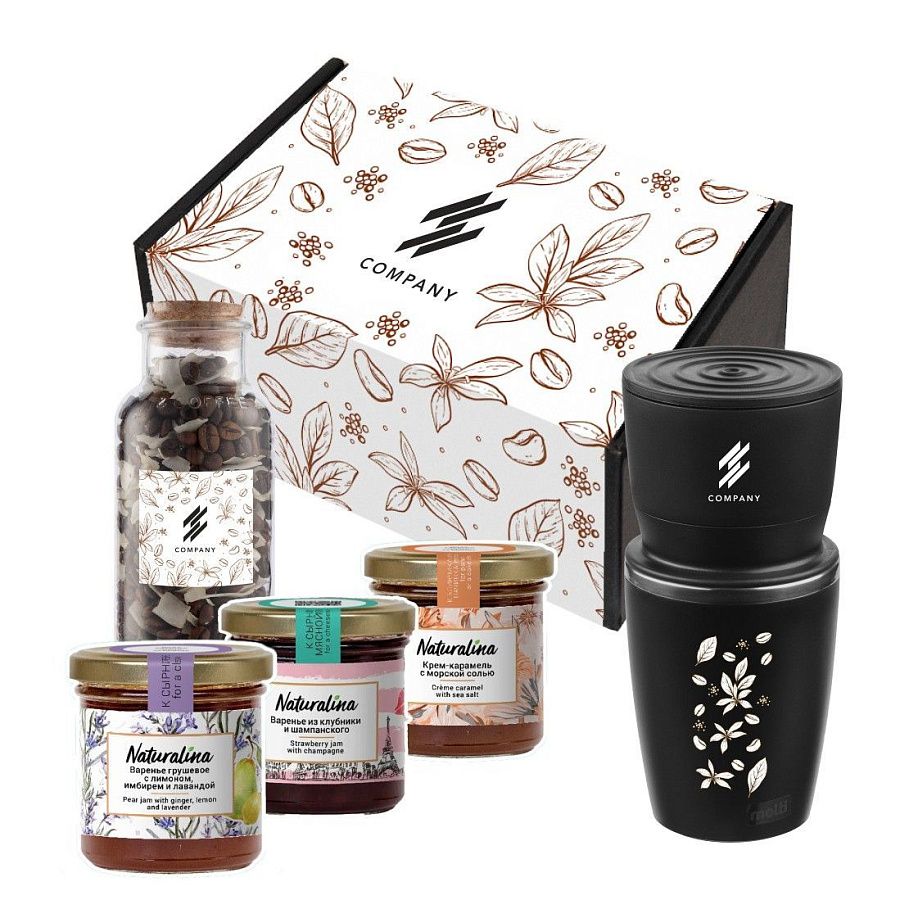 Подарочный набор "Пробуждение": кофеварка, кофе, варенье 2 шт., крем-карамель