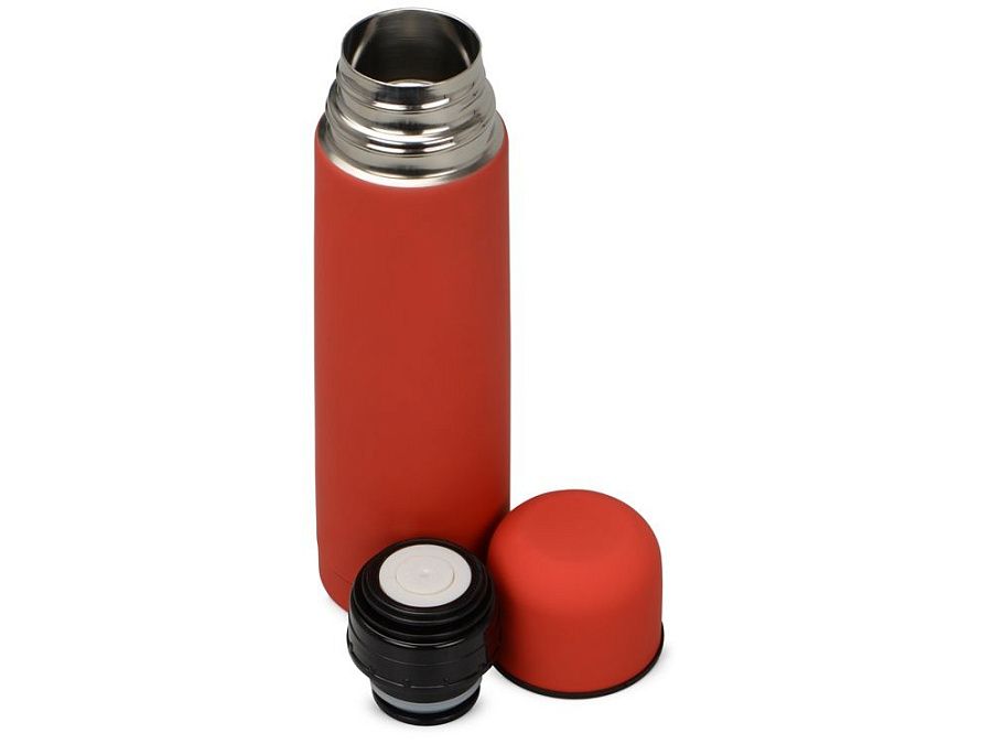 Универсальный термос с мягким прорезиненным покрытием софт-тач. Удобно и приятно держать в руке. Благодаря вакуумной изоляции и двойным стенкам сохраняет напитки горячими 24 часа. Герметичный клапан открывается и закрывается по легкому нажатию. Термос поставляется в дорожном чехле из искусственной кожи.