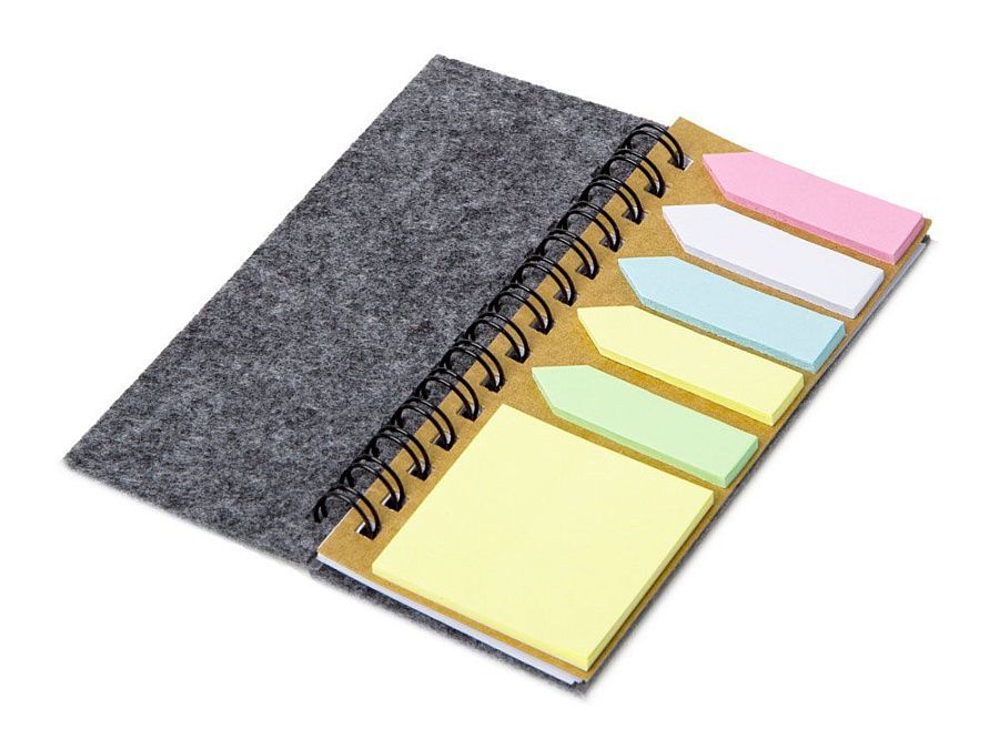 Небольшой, но функциональный блокнот со стикерами, линейкой и листами для записи идей «на ходу». Поместится в карман и даже самую маленькую дамскую сумочку. Обложка из RPET-фетра делает его износостойким и не марким.