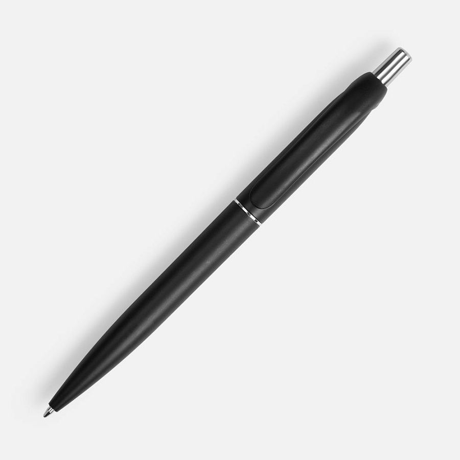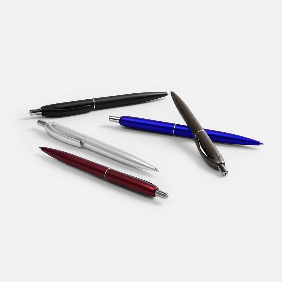 Шариковая пластиковая ручка в корпусе с эффектом «металлик» и серебристыми деталями. Приятная округлая форма клипа добавляет ручке плавности и объема.