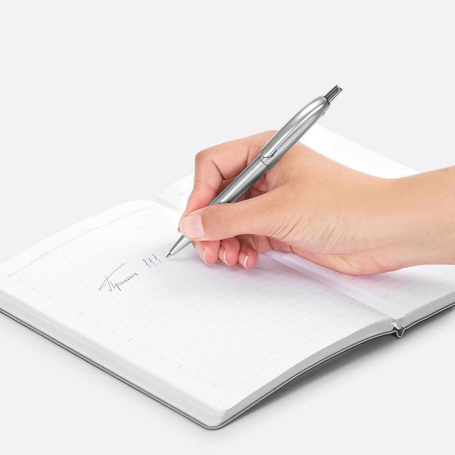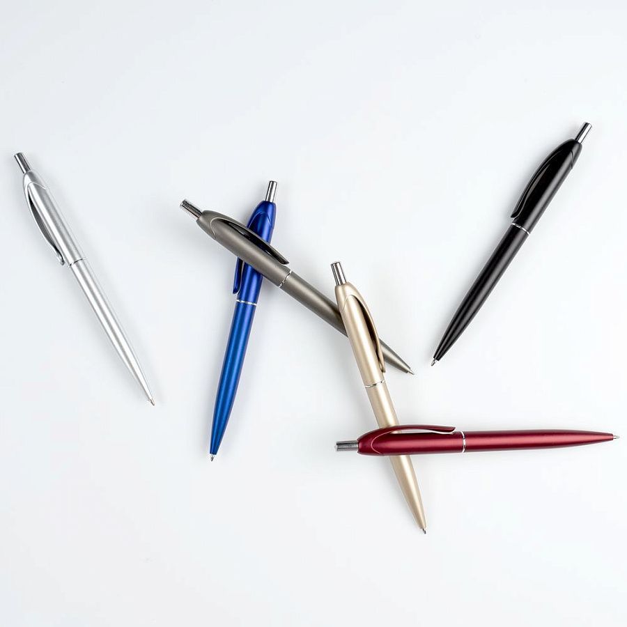 Шариковая пластиковая ручка в корпусе с эффектом «металлик» и серебристыми деталями. Приятная округлая форма клипа добавляет ручке плавности и объема.