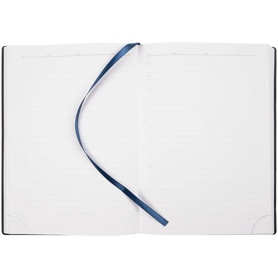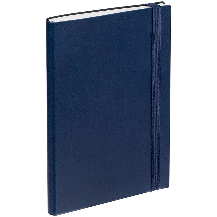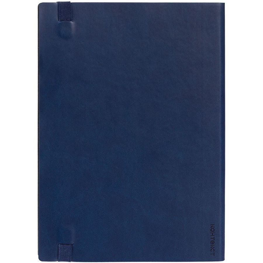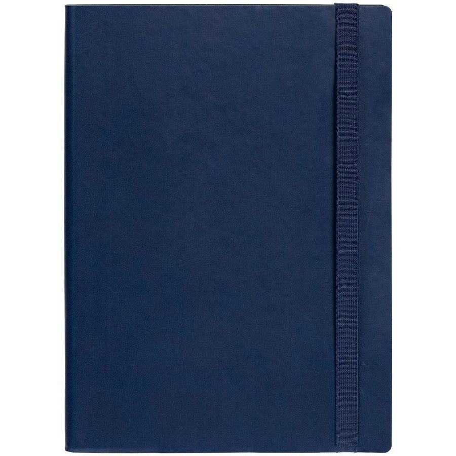 Ежедневник с гибкой обложкой, выполнен из материала Latte, темно-синий НН, дополнен резинкой шириной 1 см, капталом и ляссе темно-синего цвета.