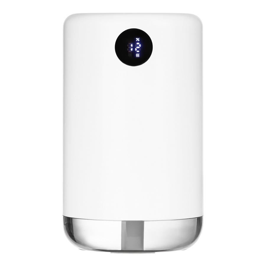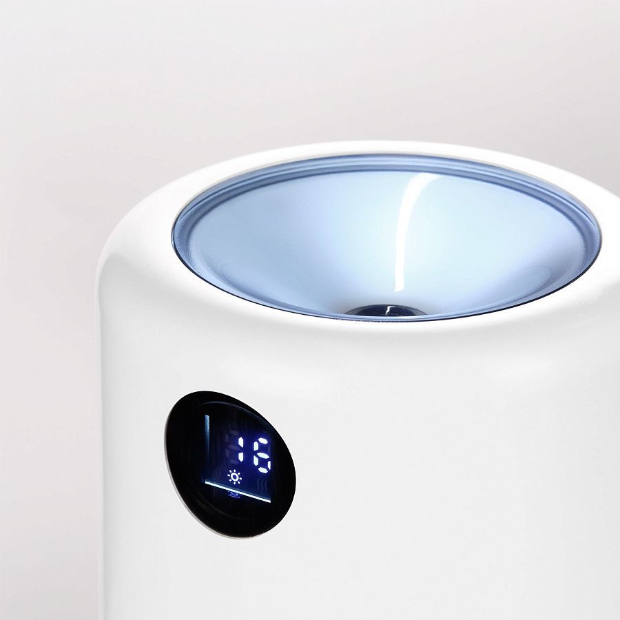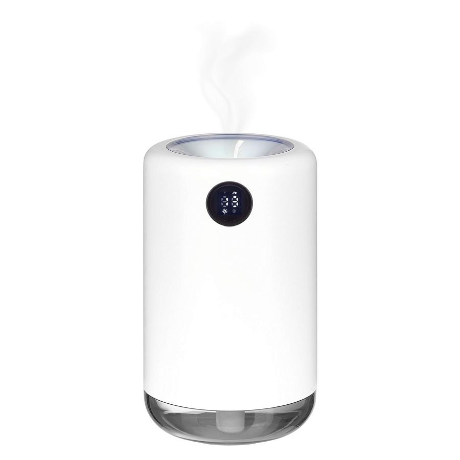 Портативный увлажнитель воздуха со встроенным аккумулятором 2000 mAh и функцией LED-подсветки белого цвета. Технология нано-распыления эффективно снижает сухость воздуха и электронное излучение, что устраняет статическое электричество. Специальное покрытие корпуса OIL PAINT обеспечивает лучшие визуальные и тактильные характеристики пластика. Есть цифровой индикатор заряда батареи. Объем резервуара воды – 500 мл.