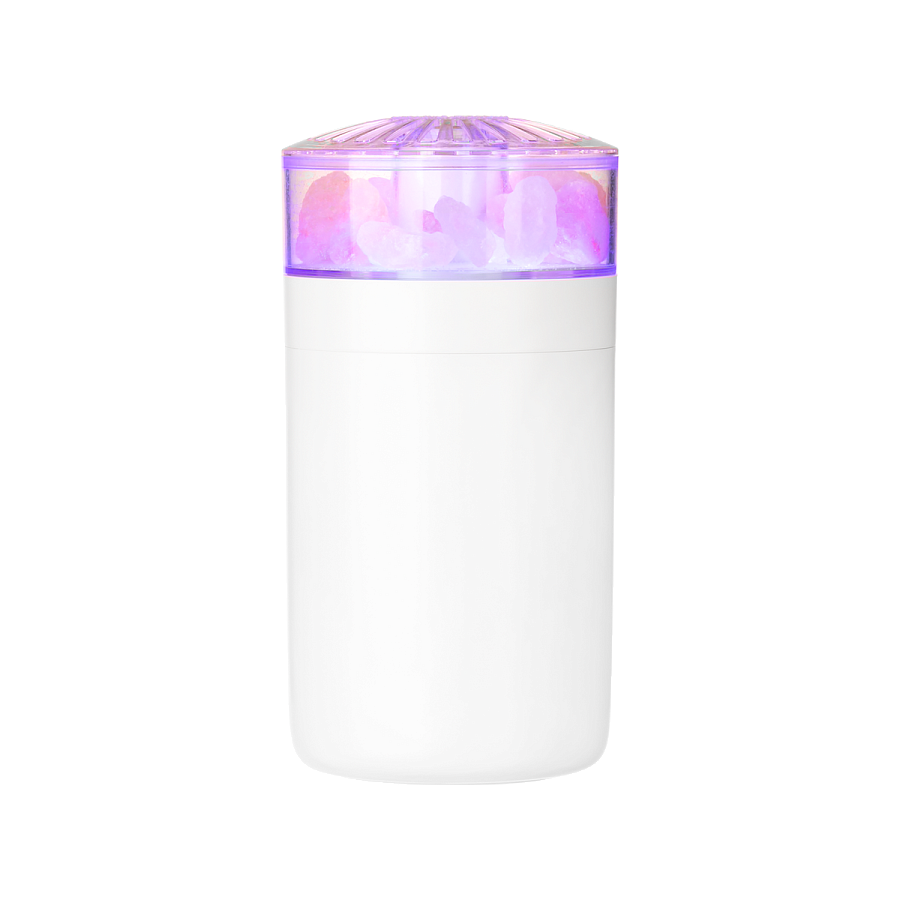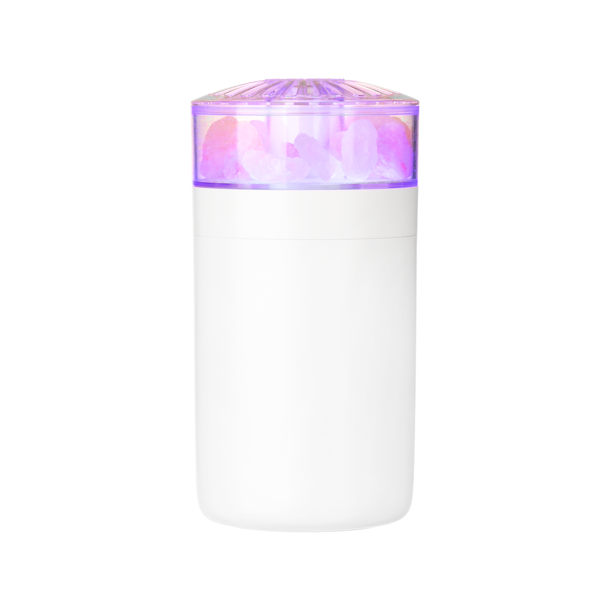 Мини-увлажнитель воздуха с соляными кристаллами и функцией радужной LED-подсветки Технология нано-распыления эффективно снижает сухость и статическое электричество в воздухе. Кристаллы гималайской соли при нагревании LED-подсветкой ионизируют и очищают воздух. Устройство можно использовать как аромадиффузор, добавив на поверхность кристаллов пару капель эфирного масла. Специальное покрытие корпуса OIL PAINT обеспечивает лучшие визуальные и тактильные характеристики пластика. Подходит для использования в помещении и в автомобиле. Объем резервуара воды – 250 мл.