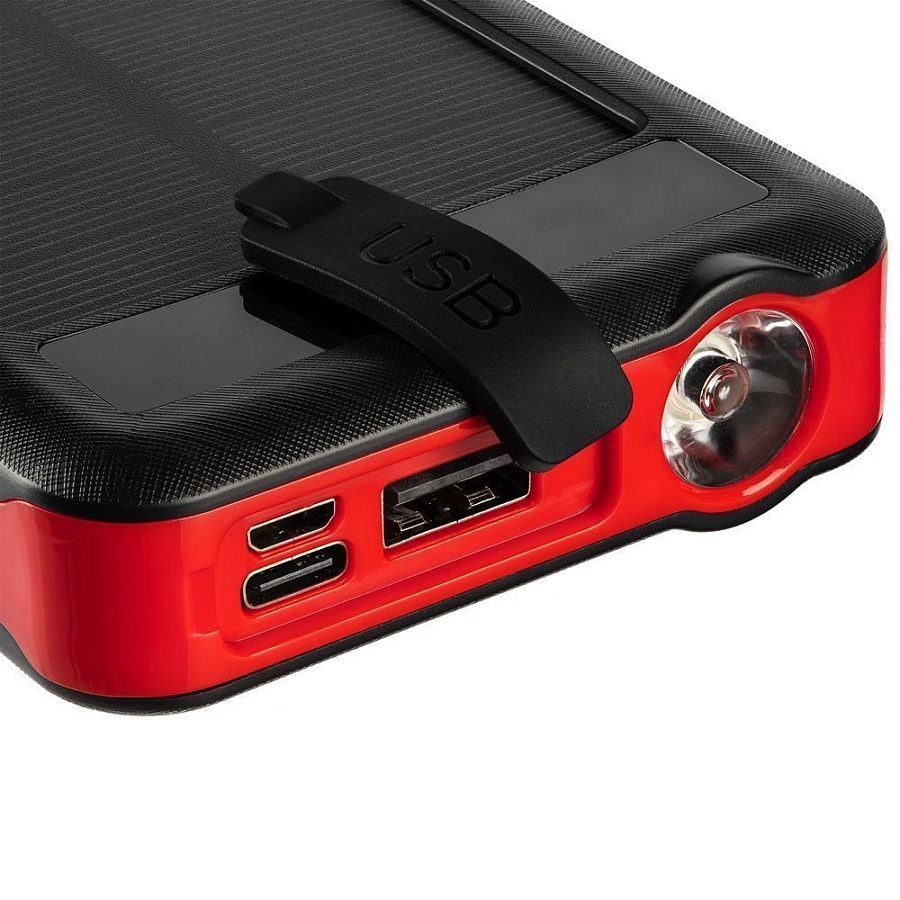 Holiday Maker Wireless — outdoor-аккумулятор с ударопрочным корпусом и защитой от пыли и брызг, который не страшно взять с собой в поход. С ним удобно заряжать разные типы устройств благодаря области для беспроводной зарядки, а также 3 встроенным кабелям с разъемами micro USB, Type-C и Lightning. Со встроенной солнечной батареей получится не остаться совсем без связи. Яркий фонарик осветит путь или послужит сигнальным маячком.
