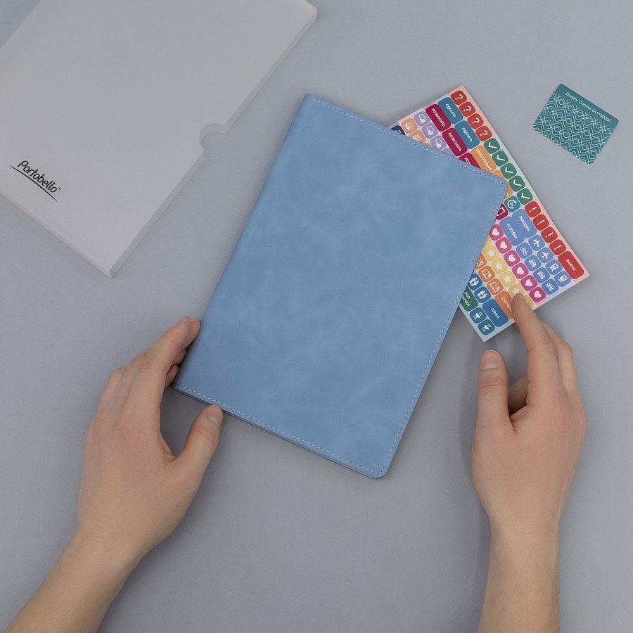 Изысканный недатированный ежедневник Verona станет вашим стильным спутником в мире планирования и идей. Мягкая, приятная на ощупь обложка из высококачественной искусственной кожи с шелковистой текстурой, напоминающей замшу, подарит вам настоящее тактильное удовольствие. Аккуратная прошивка по периметру в тон обложки и скругленные уголки добавляют ежедневнику изысканности и шарма.