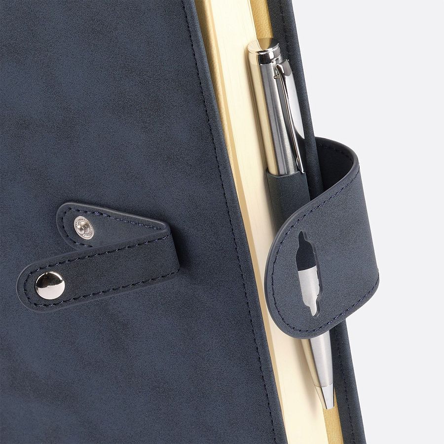 • Застежка двойная – состоит из ремешка с металлической кнопкой и декоративной петли из материала обложки